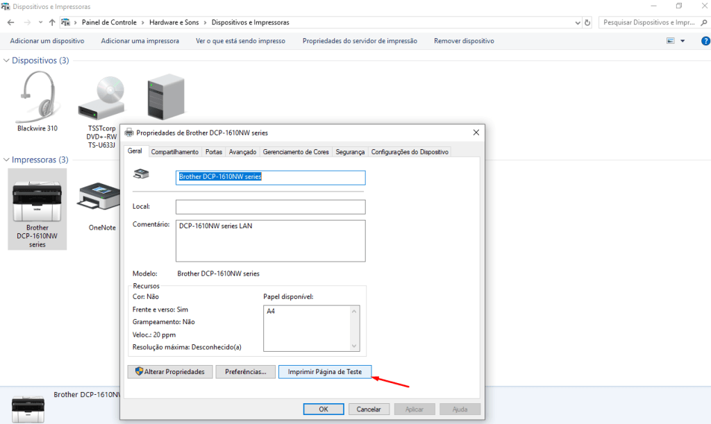 Após isto a impressora estará pronta para um teste, se acaso o problema persistir entre em contato com o suporte.