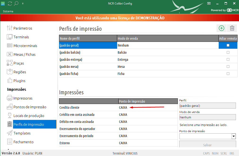 ATENÇÃO lembre-se do nome pois ela deve estar igual nos pontos de impressão.