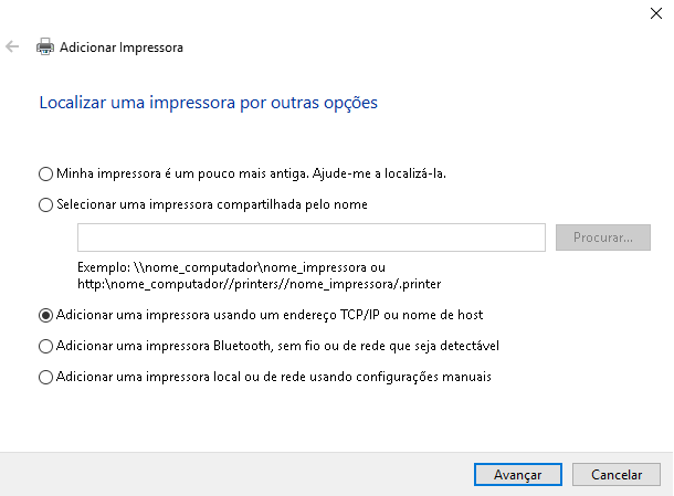 - Caso não seja encontrada localize ela por outras opções digite o ip dela e instale o driver manualmente